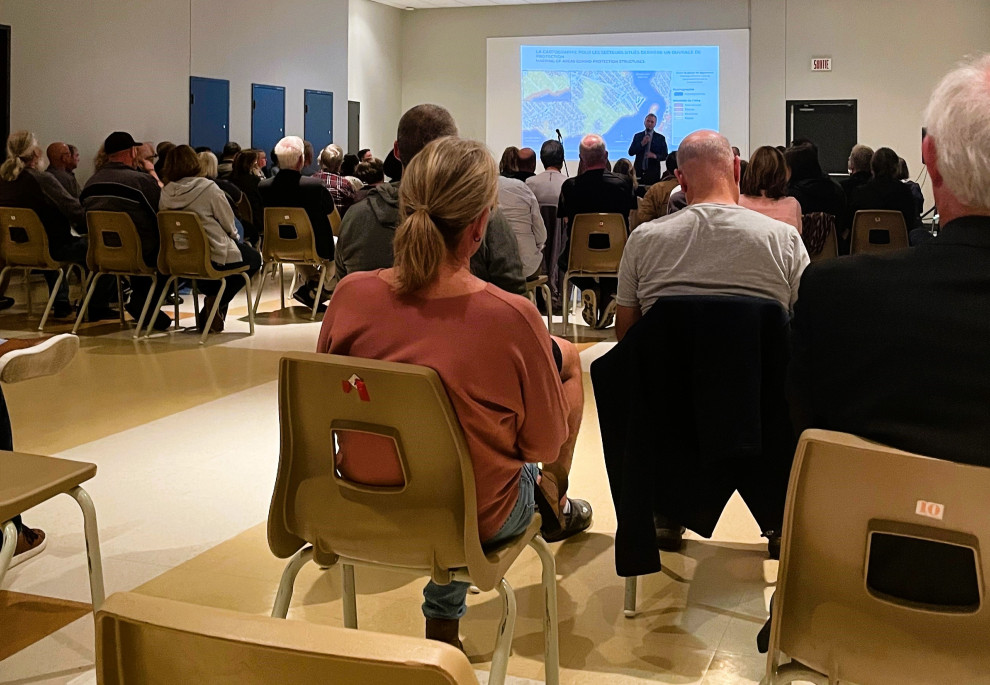 Plus de 100 personnes ont assisté à la séance d’information du 21 octobre dernier entourant le projet de modernisation du cadre règlementaire en milieux hydriques (basé sur la gestion du risque). Organisée en collaboration avec la Communauté métropolitaine de Montréal (CMM), cette rencontre a permis de présenter la méthode de détermination des nouvelles zones inondables par le gouvernement du Québec et d’éclaircir la situation propre à Deux-Montagnes.