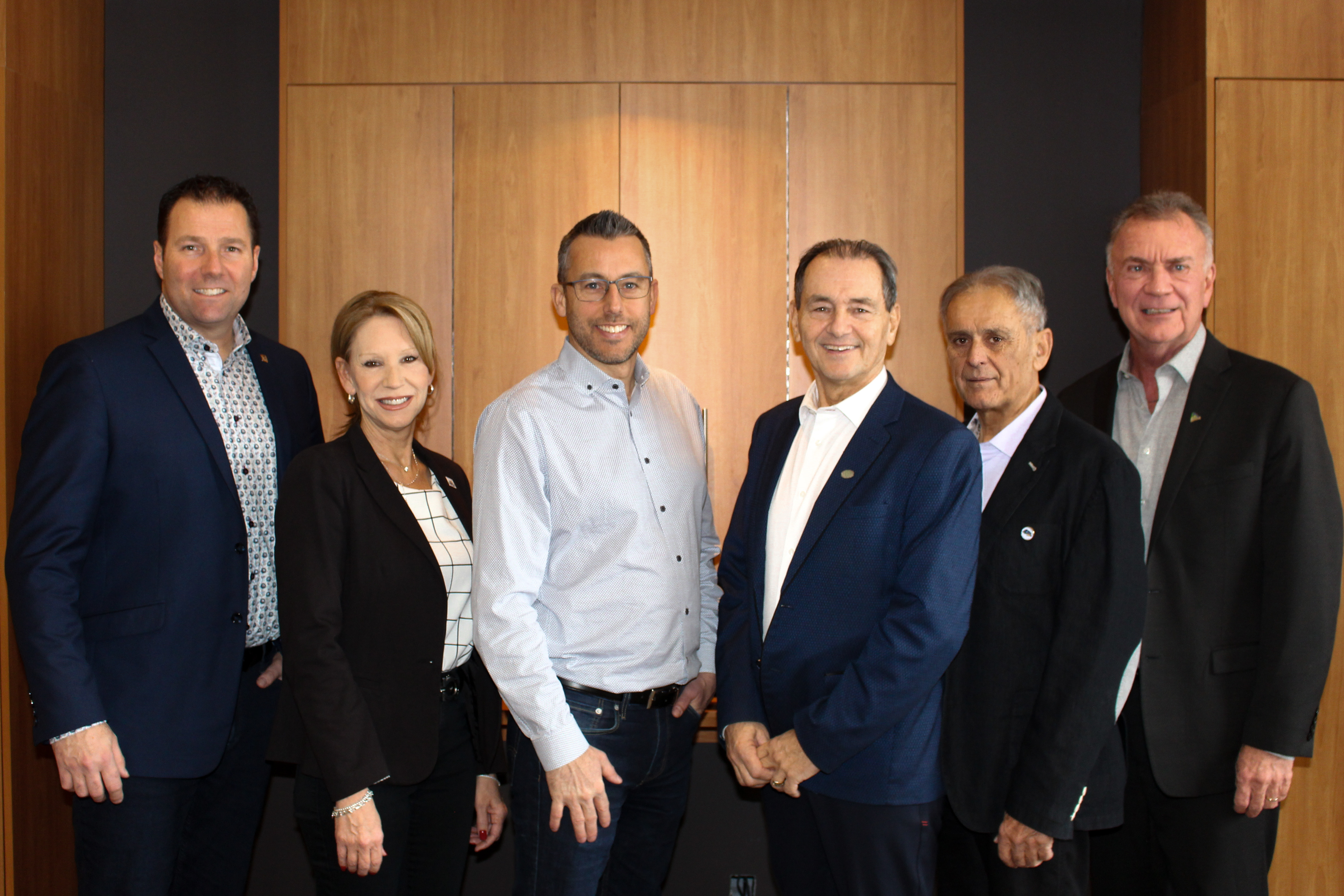 De gauche à droite : Marc Lamarre, maire de Saint-Eustache; Sonia Fontaine, mairesse de Pointe-Calumet; François Robillard, maire de Sainte-Marthe-sur-le-Lac; Benoit Proulx, maire de Saint-Joseph-du-Lac; Daniel Laviolette, maire de Saint-Placide Denis Martin, maire de Deux-Montagnes. Absent sur la photo : Patrick Hardy, maire d'Oka.
