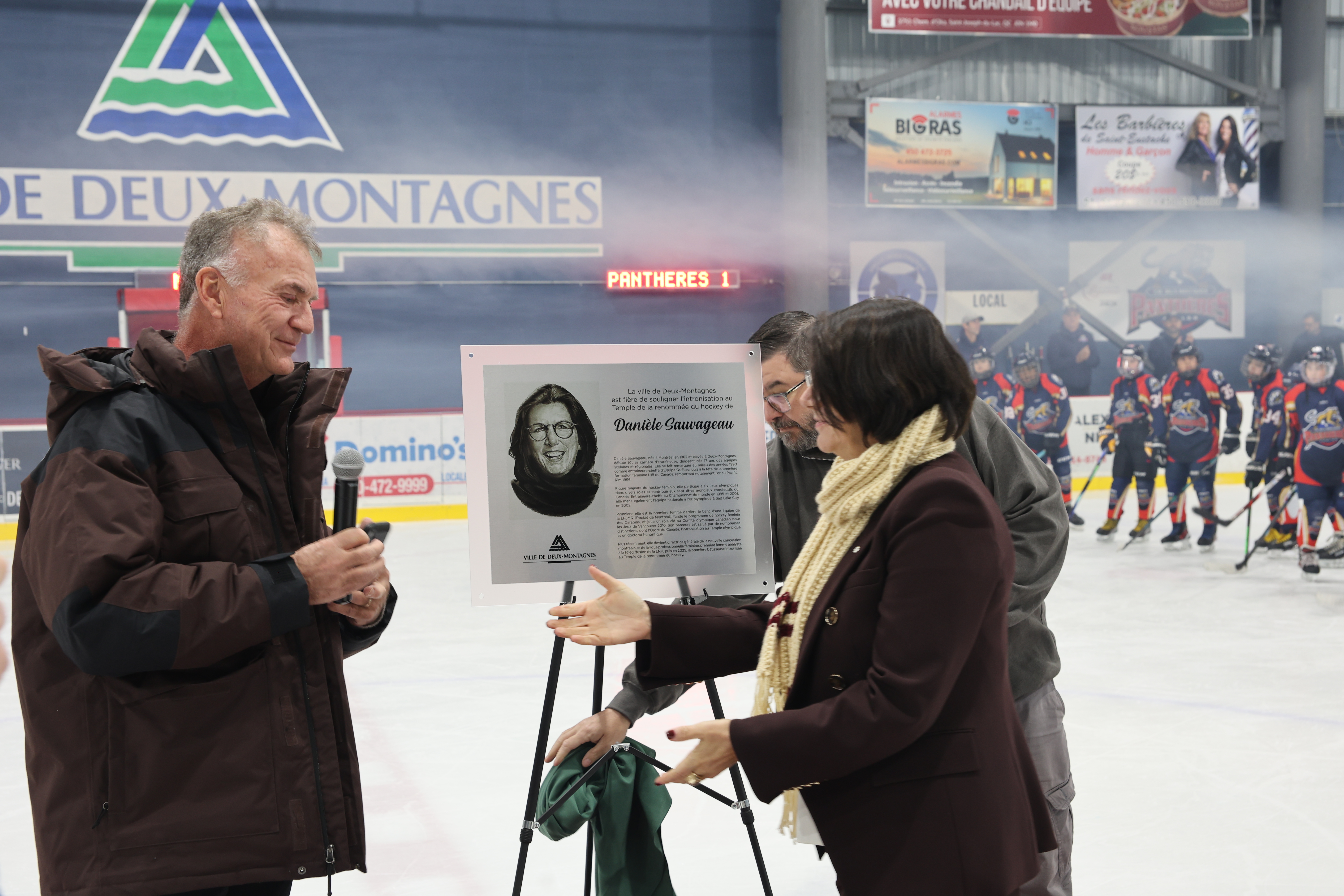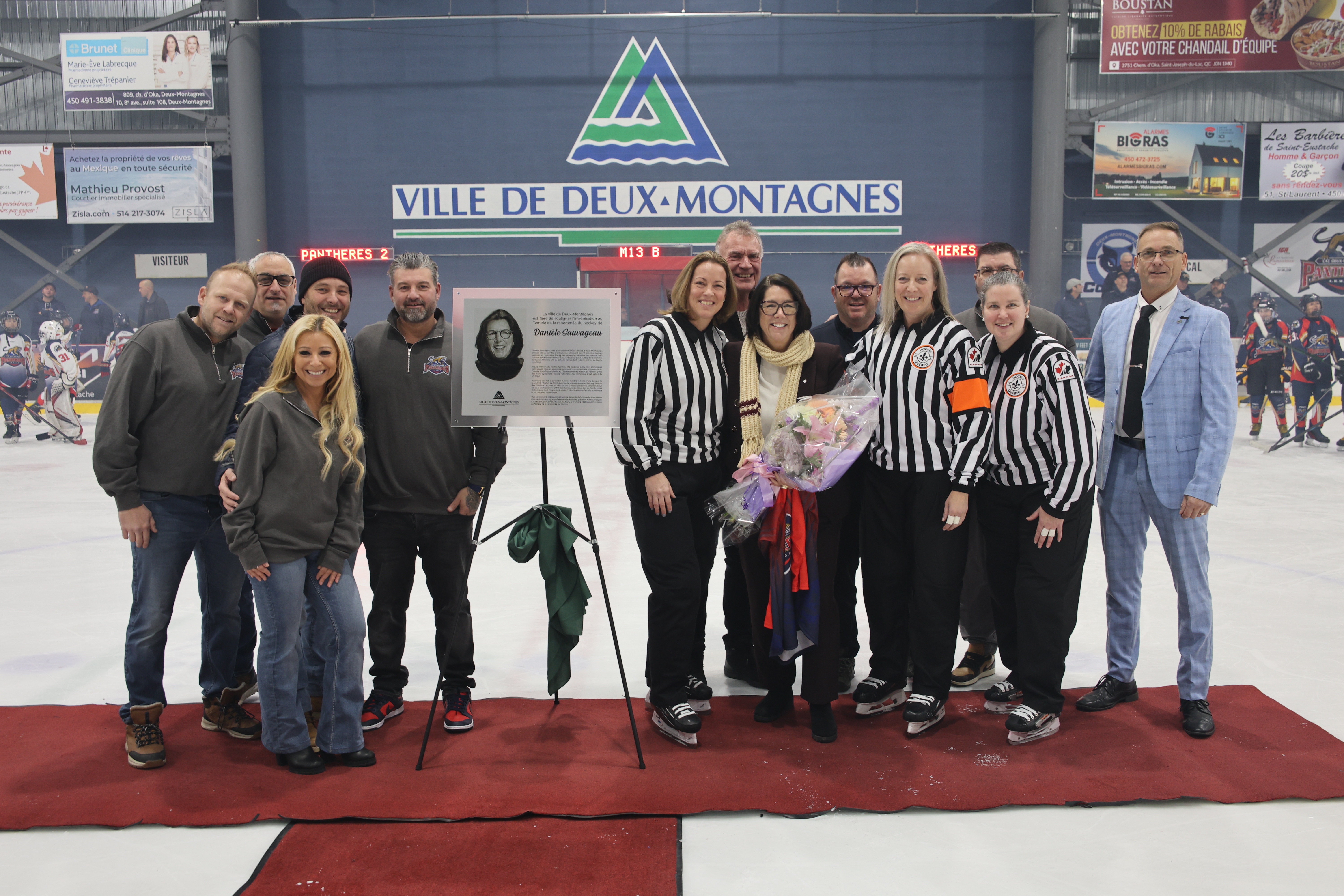 La Ville de Deux-Montagnes a rendu un hommage empreint de fierté à Danièle Sauvageau, récemment intronisée au Temple de la renommée du hockey dans la catégorie des bâtisseuses, en marge de la cérémonie d’ouverture du 27ᵉ Tournoi provincial M13 de Deux-Montagnes.